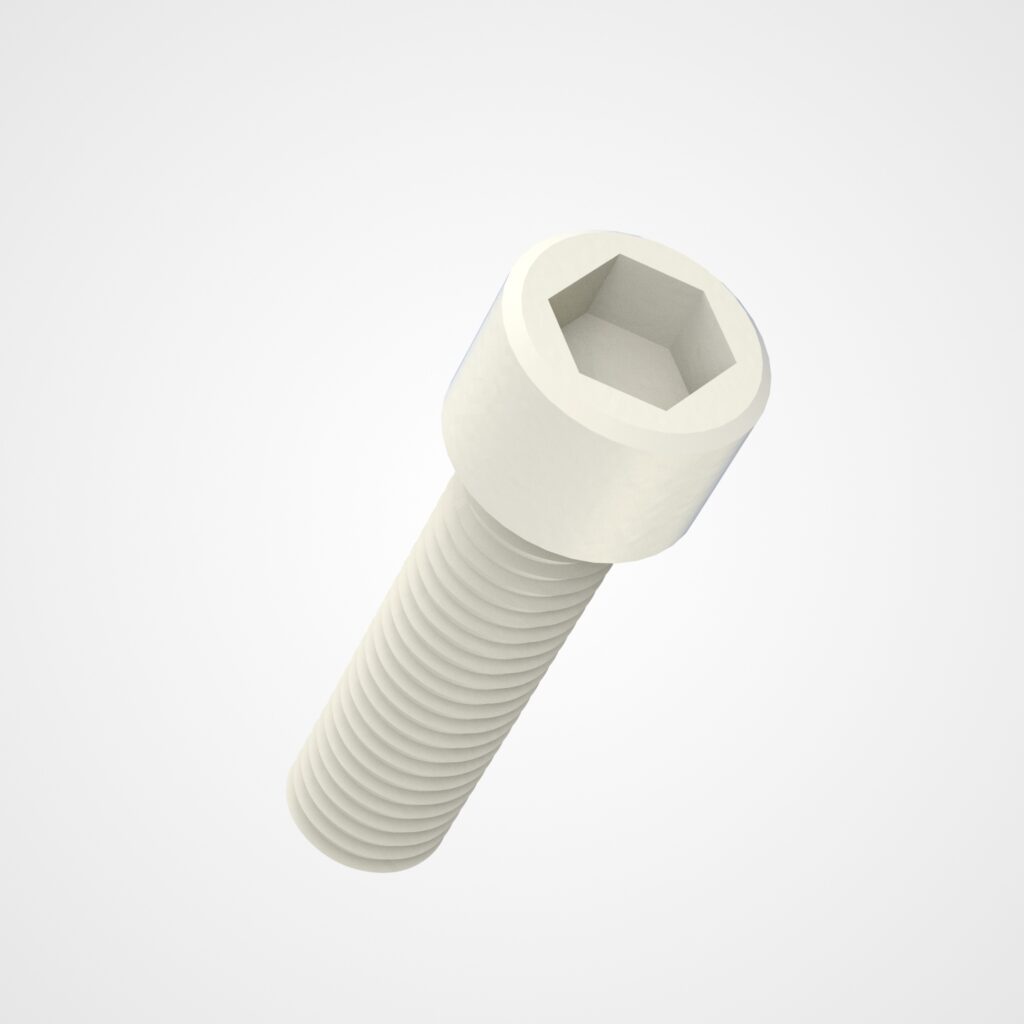 Die Zylinderschraube mit Innensechskant ähnlich DIN 912 aus Kunststoff, auch als Inbusschraube bekannt, bietet eine hohe Belastbarkeit und Präzision. Ihr zylindrischer Kopf und der Innensechskantantrieb ermöglichen eine einfache und sichere Montage mit hoher Drehmomentübertragung. Kunststoff macht sie besonders leicht und resistent gegen Chemikalien und Korrosion. Im 123PlasticParts Online-Shop finden Sie diese Schraube in fast 280 verschiedenen Varianten: von 3-150 mm Länge mit Normgewinde M3-M20.