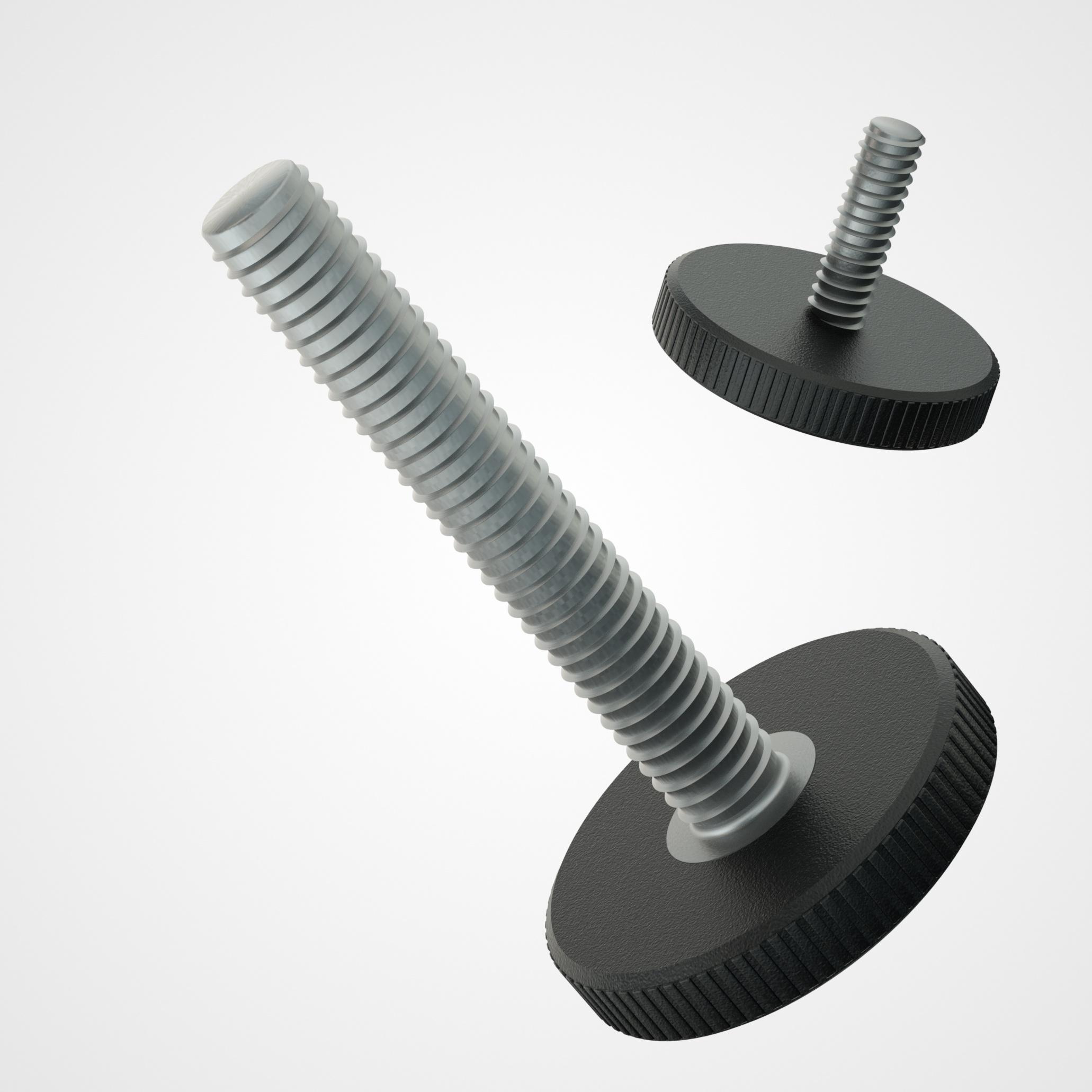 These adjustable feet, made of polyamide or featuring a plastic base with a galvanized steel threaded stem, are also known as machine feet or leveling feet. At 123PlasticParts, you will find a wide selection of adjustable feet: with metric threads from M4 to M8, a base diameter of 10 to 20 mm, and a length of 10 to 25 mm. The base is partially knurled or smooth and non-slip, while the plastic protects the floor. These leveling feet are perfect for precise alignment and stable positioning.